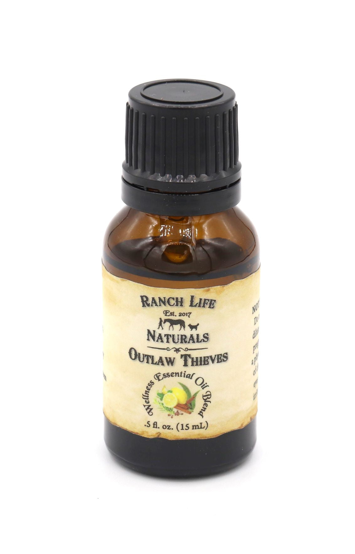 - Outlaw Thieves: Clove, Lemon, Cinnamon, Eucalyptus & Rosemary pure essential oils.